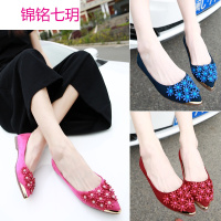 SUNTEK[]如兰/ 原创国风刺绣花朵尖头绸缎细跟高跟鞋红色婚鞋宴会鞋