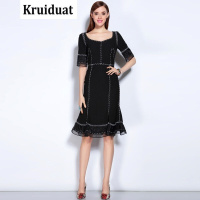 Kruidvat2017春季新款中长款显瘦小黑鱼尾裙连衣裙MY01黑色