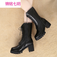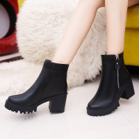 2017秋冬新款靴子欧美马丁靴女粗跟侧拉链短靴女棉靴时尚皮靴