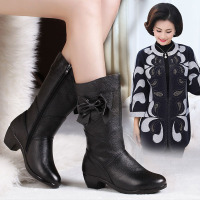 秋冬新款妈妈鞋真皮中筒靴中跟粗跟女靴大码41-43中靴子棉皮鞋女