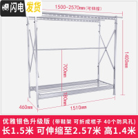 三维工匠加厚晾衣架落地双杆式伸缩折叠凉衣架晒架大型移动阳台晒被架 土豪金色(带鞋架可折成棍子)全金属 大