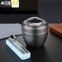 三维工匠304不锈钢饭盒学生手提保温便当盒防烫日式饭缸1人女圆形隔热提 1.0饭盒(黑色)+304勺筷蓝色盒餐具3件套