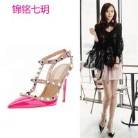 锦铭七玥跨境wish LAZADA欧美大码铆钉尖头细高跟女凉鞋