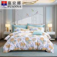 富安娜纯棉四件套 人间芳菲双人床203*229cm 黄