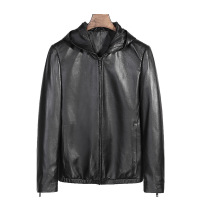真皮皮衣男秋新款绵羊皮机车皮衣皮夹克男中长款连帽商务外套潮黑色