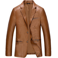 年男式秋新款皮西装男士都市时尚商务绅士皮衣薄款外套