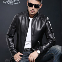 秋季海宁皮衣男绵羊皮修身皮夹克男士真皮皮衣男装外套单