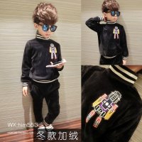 娉语儿童装加绒男童秋冬装运动套装2018新款中大童加厚男孩卫衣两件套