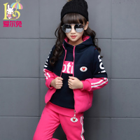 娉语童装冬装女童2017新款冬季儿童卫衣三件套10加绒12岁加厚运动套装