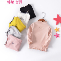 锦铭七玥春夏季新款童装韩版女童卡通字母长袖T恤儿童木耳边色打底卫衣