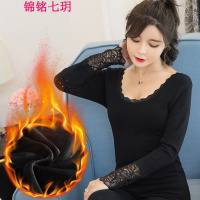 锦铭七玥竹纤维保暖内衣加厚加绒V领保暖长袖美体修身内衣女蕾丝塑身上衣
