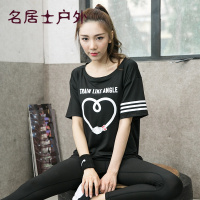 夏季运动短袖T恤女宽松显瘦速干瑜伽服跑步休闲圆领健身服上衣