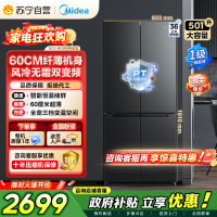 美的(Midea)60cm薄501十字四开门一级变频风冷无霜智能家用大容量电冰箱BCD-501WSPM(Q)炭灰-浮光