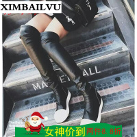 品牌网红同款长筒弹力靴包腿过膝靴显瘦女靴超长过膝靴子真皮厚底靴中筒靴潮靴单靴休闲女鞋黑色