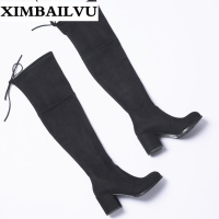 品牌2017秋冬新款张天爱杨幂机场潮拍街拍同款欧美过膝靴女袜子靴弹力靴女显瘦粗跟长靴黑色
