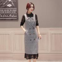 2017新款到脚踝的蕾丝长裙子人间至味是清欢陈乔恩同款显瘦背带裙二件套秋