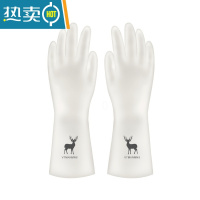 敬平半透明丁腈耐用型厨房洗碗手套女清洁家务洗衣服橡胶胶皮防水刷碗 小鹿2双 M