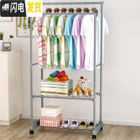 三维工匠晾衣架 加粗网片隔层落地晾衣杆阳台双杆挂衣架晒衣架室内 灰色带轮