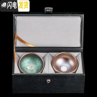 三维工匠建阳建盏茶杯套装纯手工主人杯茶具铁胎油滴对杯大号天目盏 彩金油滴对杯