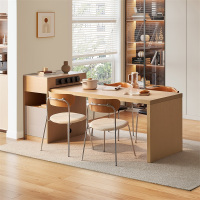 全友家居北欧原木风餐厅岛台餐桌一体多功能伸缩储物移动插座饭桌厨房吧台家具