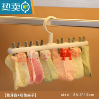 敬平宝宝专用晾衣架儿童多功能晒袜子器防滑家用加粗多夹子 象牙白+灰色夹子衣架-WG-2412/1个 1个衣夹