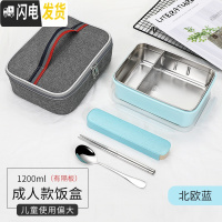 三维工匠学生分格饭盒 简约长方形保温餐盒 304不锈钢成人密封防漏便当盒 双扣蓝色带隔板加袋