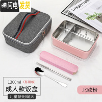 三维工匠学生304不锈钢保温饭盒 儿童隔热长方形密封防漏便当盒 成人餐盒 北欧米带隔加袋(成人款)