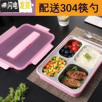 三维工匠304不锈钢保温饭盒学生分隔型上班族便携分格食堂餐盒便当盒 304透明粉色饭盒+筷子+尖勺