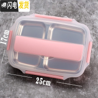 三维工匠优质304不锈钢保温餐盒饭盒便当盒分格餐盘学生上班族分隔型套装 透明粉4格+304筷勺