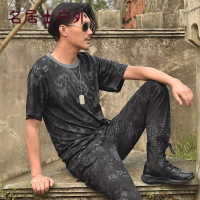 夏季新T恤男装圆领上衣修身烫钻小熊丝光棉黑色衣服潮ins