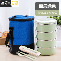 三维工匠日式保温饭盒不锈钢分格成人便当盒学生双层2三层保温桶多层餐盒 4层北欧绿送餐具+蓝色圆柱袋
