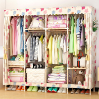 家时光 简易实木衣柜大号加固易拼装布艺衣柜简约布艺双人组合牛津布衣橱