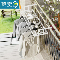 敬平防盗网护栏高层晒被子免打孔阳台晾衣杆可折叠外置凉晒衣杆 不锈钢双管支架[50厘米]1只装晒衣篮