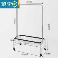 敬平福利多家居挂衣架落地卧室晾衣架多功能置物架移动衣帽架衣服架子 100装衣篮加长款[橡胶轮+包边]