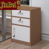 戴铁办公室文件柜桌下矮柜档案带锁抽屉储物柜收纳柜85高单门柜咖白套