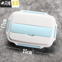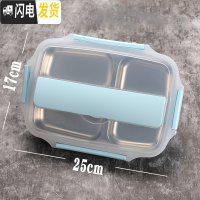 三维工匠304不锈钢饭盒便当盒保温天展学生食堂分格便携分隔型上班族餐盒 304透明蓝色饭盒