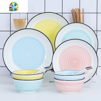北欧釉下彩家用陶瓷礼品餐具碗筷碗盘碗碟套装盘子饭碗米饭碗组合 FENGHOU 18件套-浅浅灰色
