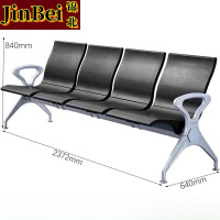 锦北多人机场椅PU候诊椅聚氨酯连排休息椅自结皮医院等候椅四人位黑色