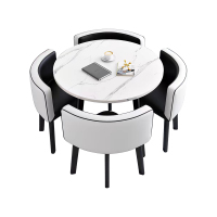 中豫鑫泽ZYXZ4100938 简约接待桌椅洽谈桌椅 一桌四椅 白石根圆黑白皮椅
