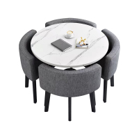 中豫鑫泽ZYXZ4100946 简约接待桌椅洽谈桌椅 一桌四椅 白石根圆桌灰色布椅