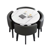 中豫鑫泽ZYXZ4100933 简约接待桌椅洽谈桌椅 一桌四椅 白石根圆黑色皮椅