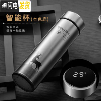 三维工匠保温杯男士女不锈钢水杯子便携水瓶学生商务定制泡茶杯 枪色鹿[智能杯盖]