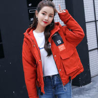 普美思棉服女2017冬季新款韩版羽绒棉服女装军工装短款贴标连帽棉衣外套