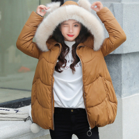 普美思棉服女2017冬季新款A字娃娃羽绒棉服中长款猫耳朵街头风外套女