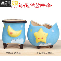 三维工匠多肉花盆陶瓷粗陶透气大口径大号盆栽创意小盆栽 晴宝花盆2件套 中花盆容器