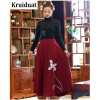莞馨(wanxin)女装秋装2016新款长袖棉麻连衣裙 韩版收腰显瘦圆领大摆裙