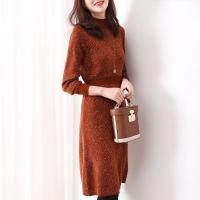 春秋新款羊绒连衣裙针织打底衫纯羊毛衫女圆领配大衣春秋装纯羊毛衣针织打底羊绒衫女春秋季中长款宽松针织打底毛衣加厚羊毛连衣裙