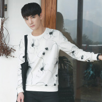 莞馨(wanxin)2016新款秋装韩版时尚印花圆领休闲套头卫衣男修身上衣潮