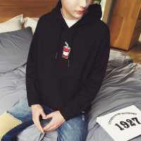 莞馨(wanxin)新款秋装长袖外套男韩版休闲套头衫小清新刺绣纯色连帽卫衣男