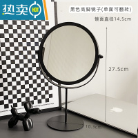 敬平高颜值ins风小镜子化妆镜桌面可立便携家用台式梳妆镜公主双面镜 黑色支架镜子便携式用镜